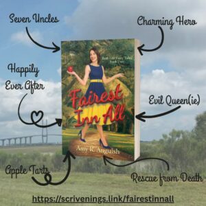 It’s the second week of March- This week’s blog will highlight a book in my “To Be Read” pile. This week, I a looking forward to the release of Amy Anguish’s fairytale retelling: Fairest Inn All. Why? You may ask? There are several reasons. First, there is nothing more fun than a contemporary retelling of a fairy tale. Second, Amy’s most recent book Rendersella was even better than I expected. Third, The location of this book is coastal Georgia, and it includes a hurricane. Just like my most recent novella, Anchor in a Whirlwind. Lastly, I confess to a small amount of bias, since Amy has edited many of my own books, and I count her as a friend.
